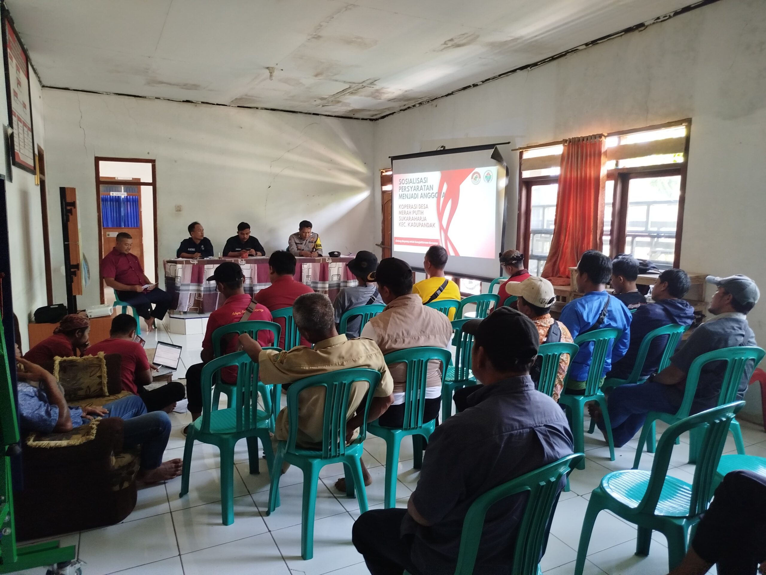 Acara dipimpin oleh Sekretaris Desa Sukaraharja, A. Samsudin, dan dihadiri oleh Ketua Koperasi Merah Putih, Bhabinkamtibmas, para ketua RT/RW, serta calon anggota koperasi.