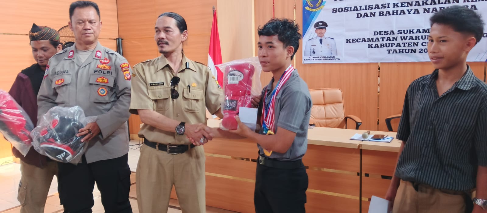 Disela kesibukan Kepala desa Mekarmulya H. Iman memberikan Apresiasi Penghargaan warganya yang telah memenangkan kejuaraan tinju buat Ade petinju yang beberapa waktu lalu tanding pertma kali sudah mendapatkan Juara 3, ini adalah sebuah contoh untuk remaja Yang berprestasi. hari ini kita lagi melatih anak-anak untuk ke cabang olahraga tinju yang mana satu anak sudah lolos kejuaraan di koni Cianjur ataupun Jawa Barat diarahkan supaya anak-anak lebih semangat berlatih dan lebih fokus ke olahraga baik itu tinju atau pencak silat supaya tidak terjerumus hal-hal yang tidak kita inginkan. Ujar Kades.